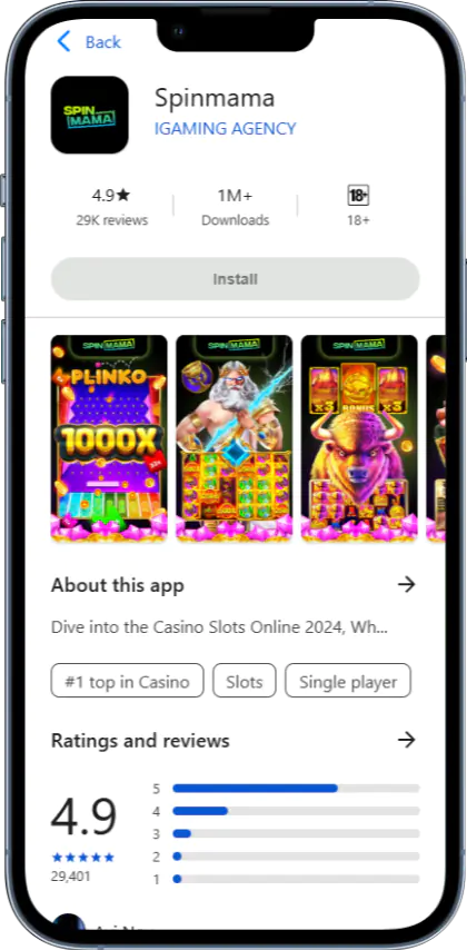 Les utilisateurs Android peuvent installer la Spinmama apk download directement à partir du site officiel, car l’application n’est pas disponible sur le Play Store pour des raisons de politique interne. Pour un spinmama apk download sans problème, rendez-vous sur notre page dédiée, autorisez le téléchargement de sources inconnues dans les paramètres de votre téléphone, puis installez le fichier.