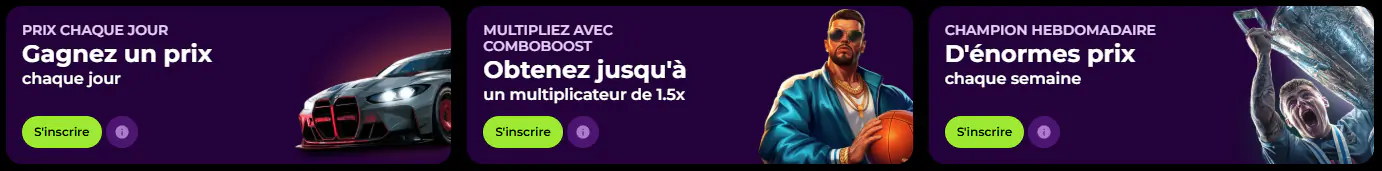 Nos bonus de recharge sont idéaux pour les joueurs réguliers. Par exemple, profitez de notre 50 % Highroller Bonus jusqu’à 500 € avec le code promo suivant : 50HIGH.